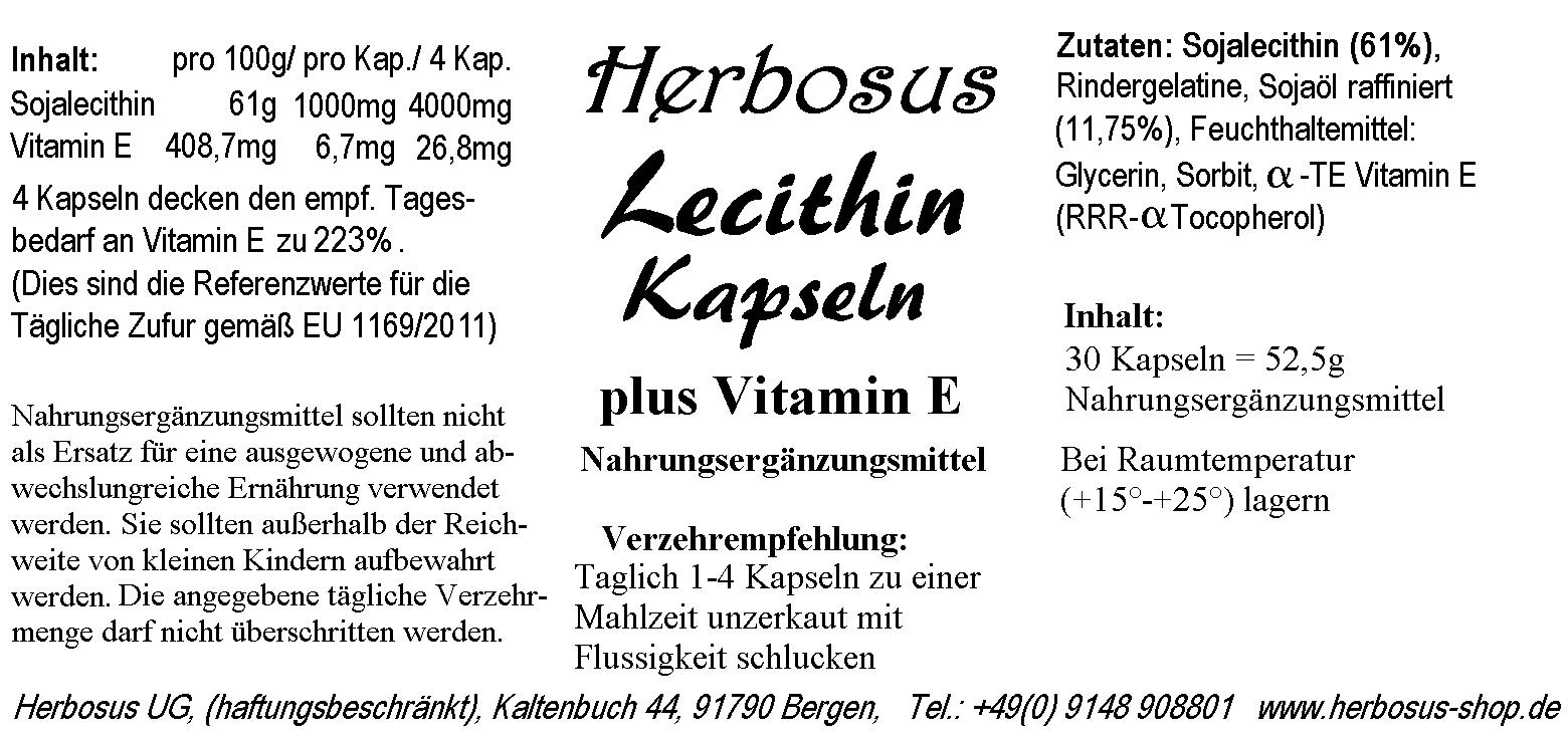 Produktinformationen "Lecithin plus -vit. E Kapseln von Herbosus"