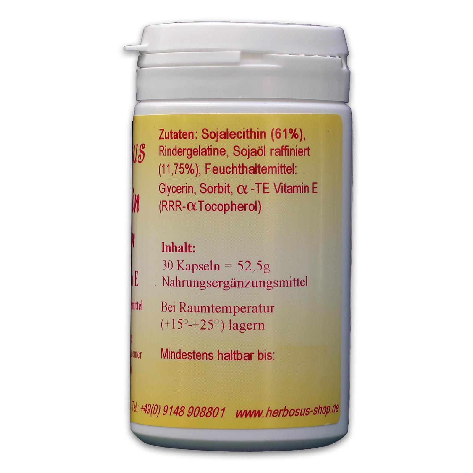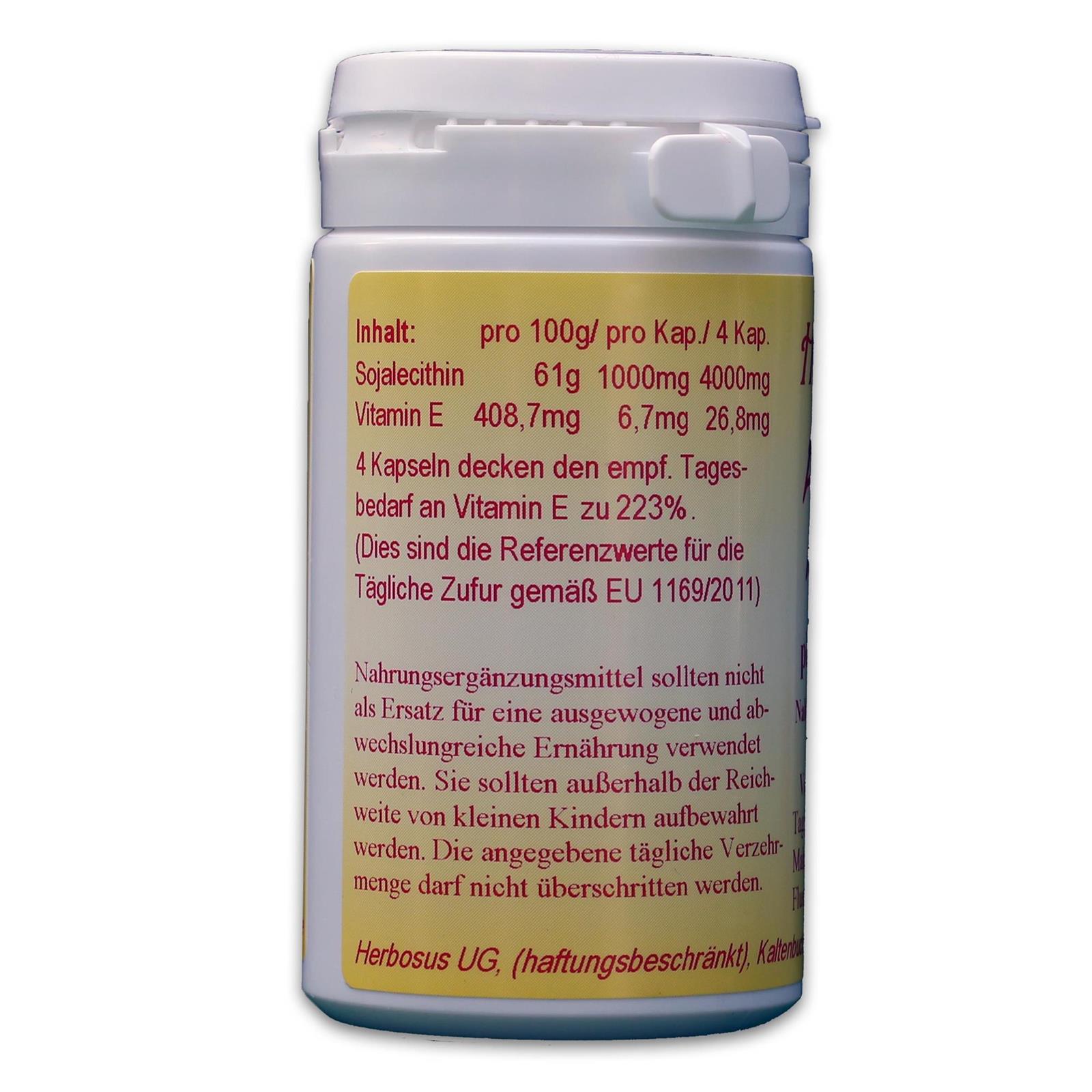 1 Kapsel enthält 1000 mg Sojalecithin und 6,7 mg Vitamin E.
