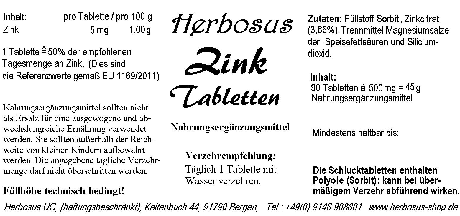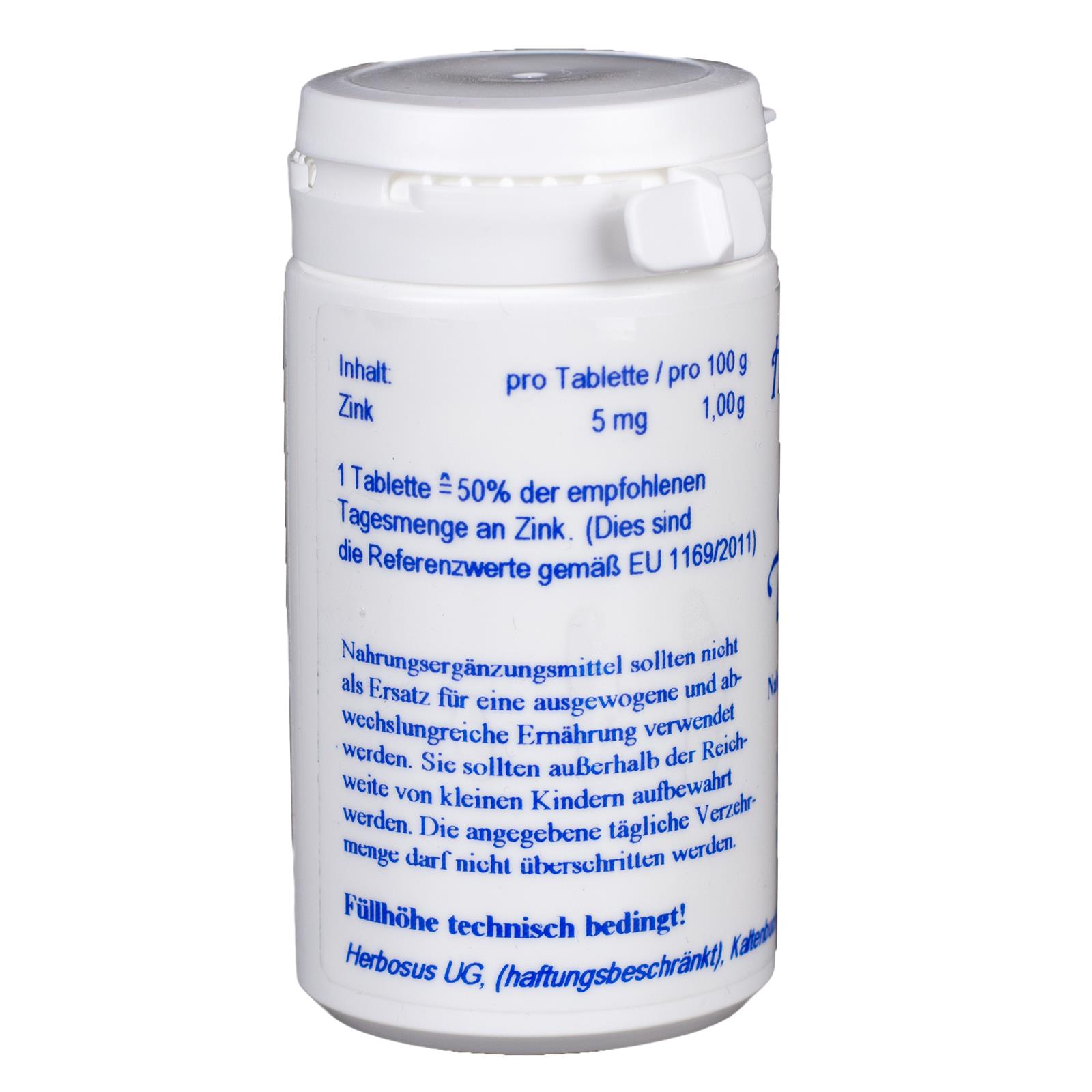 Pro Tablette enthält 5 mg Zink, was 50 % des empfohlenen Tagesbedarfs gemäß der EU-Verordnung 1169/2011 entspricht.